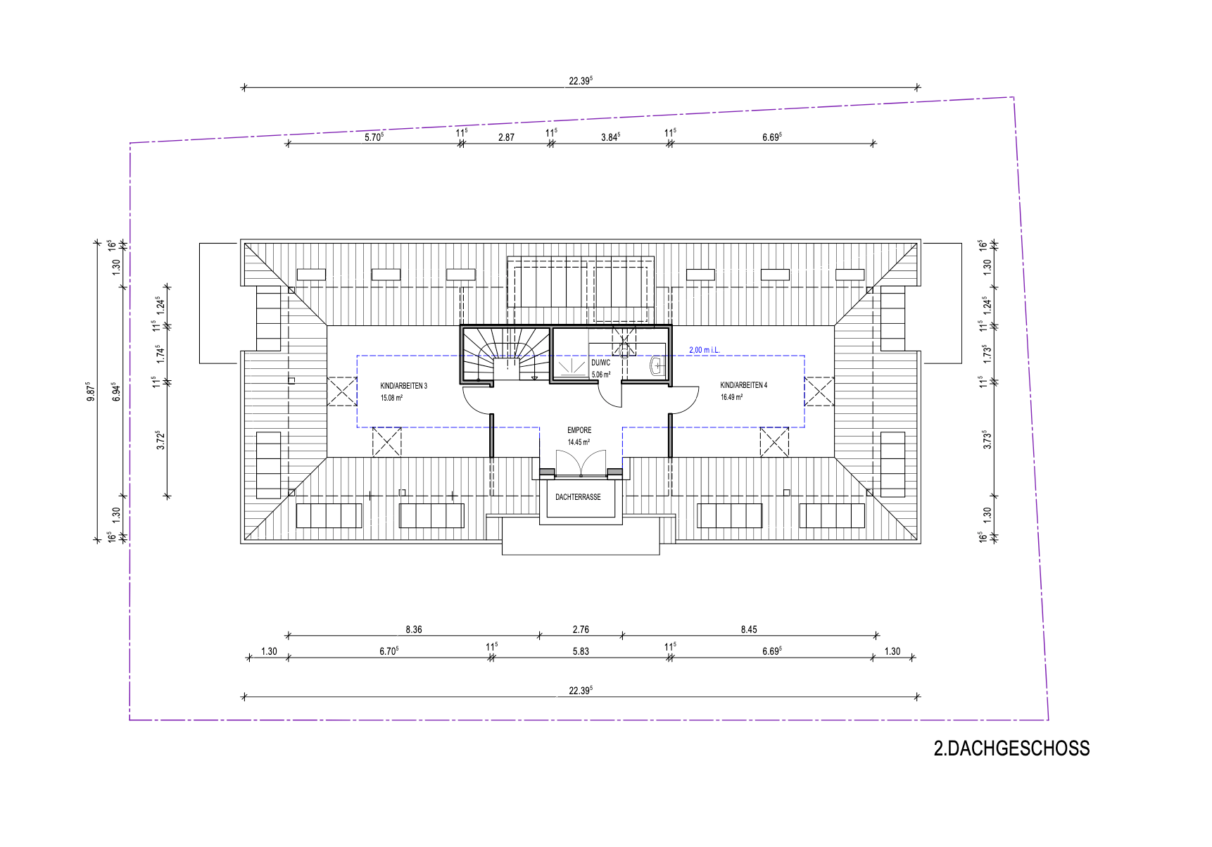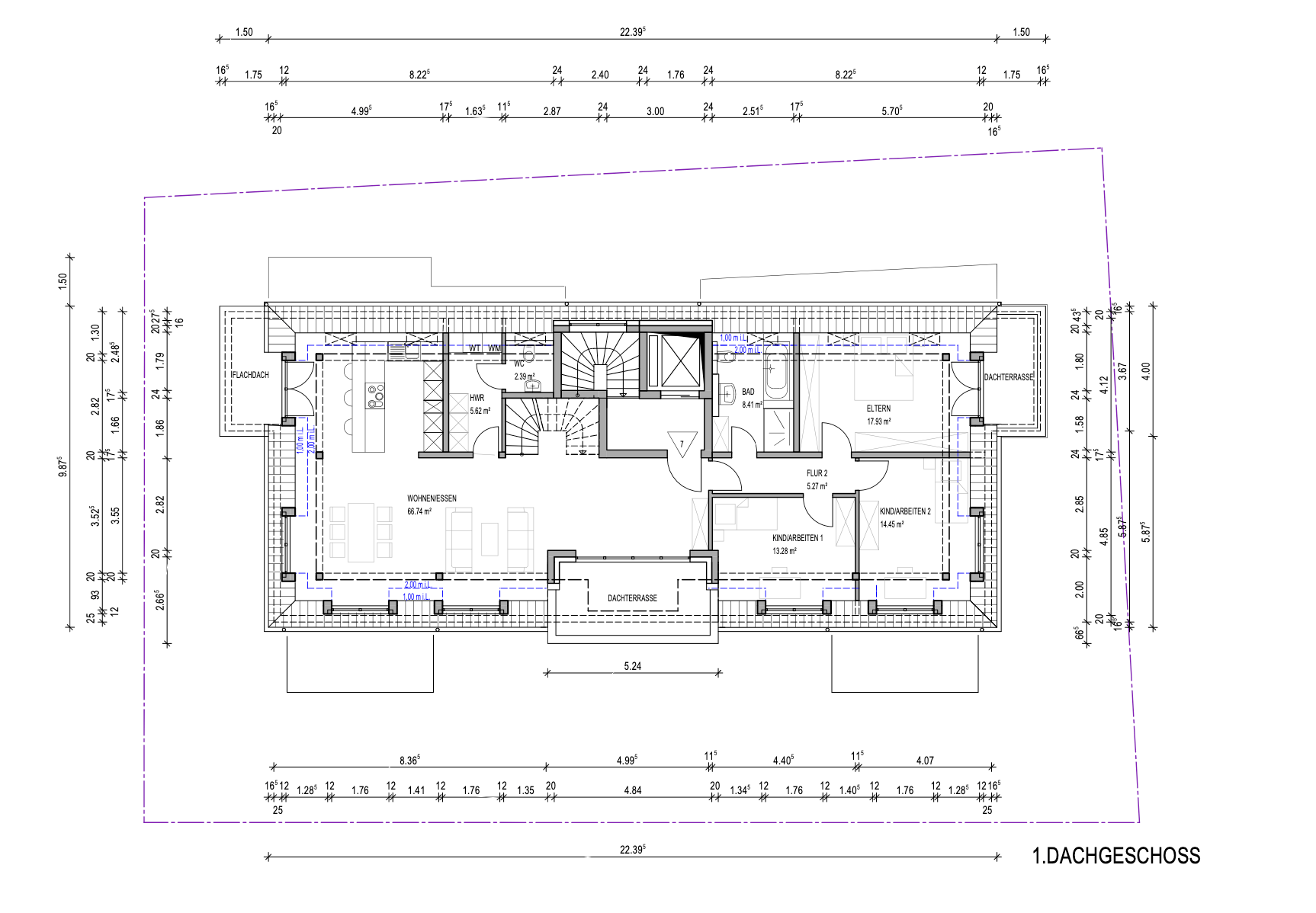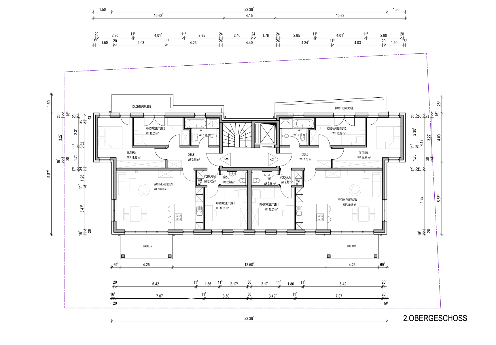 Diese Wohnung zeichnet sich durch ihr großzügiges Wohnkonzept auf zwei Etagen aus. Im Dachgeschoss erstreckt sich ein offener Wohn-Essbereich mit Küche, Abstellraum und Gäste-WC sowie ein Flurbereich zu den Schlafräumen im linken Wohnungstrakt. Eine Treppe verbindet das Dachgeschoss mit dem Spitzboden, auf dessen Ebene sich zwei weitere wunderschöne, helle Wohnräume mit Badezimmer befinden.