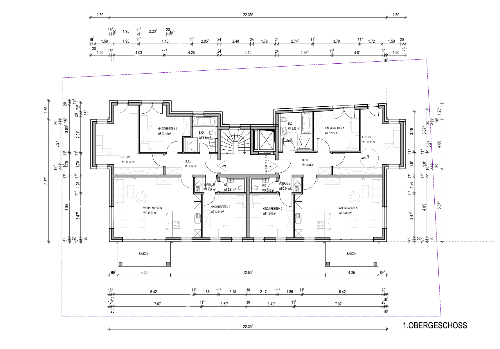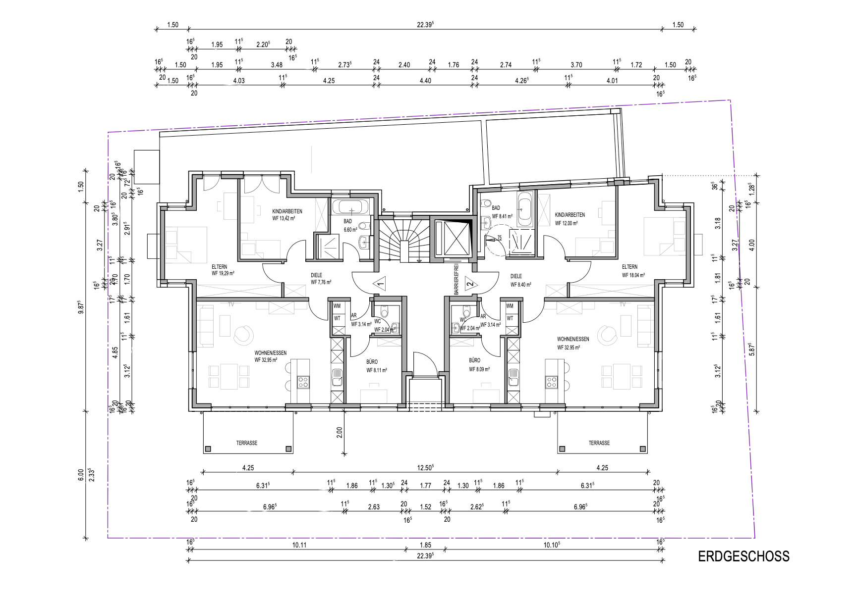 Auf rund 100 m² bietet sie Ihnen alles, was Sie sich für komfortables und elegantes Wohnen wünschen. Die beiden Wohnungen im Erdgeschoss verfügen über einen offenen Wohn-Essbereich mit Küche, einem Schlafzimmer, zwei weiteren vielseitig nutzbaren Zimmern (perfekt als Kinderzimmer, Homeoffice oder Gästezimmer), einen Abstellraum sowie einem Bad mit Badewanne, begehbarer Dusche, WC und einem separaten Gäste-WC.